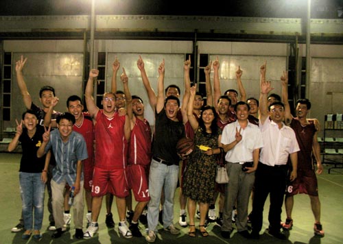 10月17日,在經(jīng)歷了半決賽的波瀾不驚之后,上屆參加決賽的兩支隊(duì)伍又在決賽中會(huì)師,衛(wèi)冕冠軍房建二分公司和上屆亞軍海川集團(tuán)聯(lián)手為觀眾們奉獻(xiàn)了一場(chǎng)經(jīng)典的比賽。房建二分公司中冠軍隊(duì)的成員基本都在,人員變化不大;海川集團(tuán)陣容變化很大,幾名參加過上屆比賽的老隊(duì)員退出,幾名年輕隊(duì)員的加盟讓他們充滿朝氣和活力,這在比賽初期發(fā)揮了重要作用。海川集團(tuán)憑借著速度上的優(yōu)勢(shì)迅速取得領(lǐng)先,分差最大時(shí)超過了11分。然而,經(jīng)驗(yàn)上的不足讓他們?cè)诒荣惡蟀攵纬员M了苦頭,房建二分公司依靠出色的配合在第三節(jié)成功將比分追平。直至第四節(jié)的最后兩分鐘,海川集團(tuán)僅依靠幾次罰球保持著微弱的領(lǐng)先。不期而至的小雨使場(chǎng)上的形勢(shì)突然間發(fā)生了逆轉(zhuǎn),追趕勢(shì)頭很猛的房建二分公司似乎一下子集體走神,連續(xù)的兩個(gè)失誤讓對(duì)手抓住機(jī)會(huì)打快攻并連得五分。最后的一分鐘,海川集團(tuán)領(lǐng)先了七分,比賽已經(jīng)失去了懸念。最終,海川集團(tuán)戰(zhàn)勝了房建二分公司,在時(shí)隔四年后,再次站在了冠軍領(lǐng)獎(jiǎng)臺(tái)上。