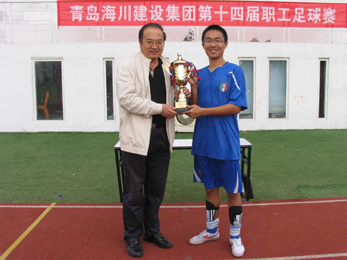 繼10月9日分組預(yù)賽之后,17日(星期天)上午,海川集團(tuán)“海川建設(shè)杯”第14屆職工足球賽在市北區(qū)中聯(lián)運動公園足球場進(jìn)行了半決賽和決賽。吳鑫董事長和欒恒忠副總裁蒞臨球場為球員鼓勁,并在閉幕式上分別為前三名球隊頒獎。決賽是在三分公司足球隊和物流分公司足球隊之間進(jìn)行的,這是一場精彩的進(jìn)球大戰(zhàn),最終三分公司以5:4的比分險勝物流分公司隊,獲得冠軍;物流分公司獲得亞軍;海川總部以4:2戰(zhàn)勝二分公司隊獲得第三名。