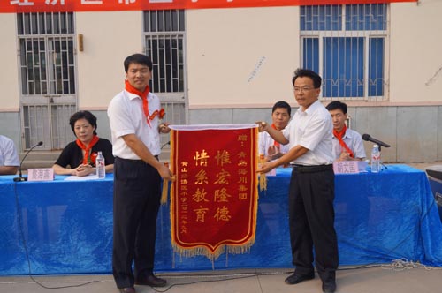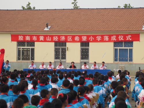 9月20日下午,秋高氣爽、陽光明媚,膠南市黃山經濟區(qū)希望小學落成儀式在學校大操場隆重舉行。激昂的國歌聲后,少先隊員們?yōu)槌鱿I導敬獻紅領巾,以此來表達孩子們的崇高敬意。一位學生代表用稚嫩的童音道出了對青島海川建設集團及支持希望工程事業(yè)建設的各類愛心團體的誠摯感謝,和臺下上千名含苞待放,映襯在陽光里的一張張幸福笑臉一樣,他們都是祖國的未來和希望,也讓在場的每一位成年人對“捐資助教、功德無量”這句話有了更深刻的理解和感悟。黃山經濟區(qū)希望小學校長懷著激動地心情向海川集團贈送錦旗一面,愛心助學的善舉也贏得了在場師生一次又一次熱烈的掌聲。集團黃中坡副總裁代表發(fā)言,他特別指出,今年恰逢集團成立60周年之際,本著“節(jié)儉辦大慶”和“注重社會公益性”的宗旨,集團將主要活動資金拿出來援建黃山經濟區(qū)中心小學,另外發(fā)動企業(yè)職工向老一輩建筑人曾經援建過的四川藏族甘孜地區(qū)捐獻衣物。通過一系列與社會接軌的主題活動,力爭將本次大慶辦得更有意義。最后他衷心希望膠南市黃山經濟區(qū)中心小學的全體同學從小樹立遠大目標,刻苦學習,努力向上,爭做國家棟梁之才,立志回饋社會,報效祖國。青島團市委副書記張海軍和膠南市委副書記佟海燕也出席儀式并與海川集團黃中坡副總裁一起為希望小學揭牌,同時就海川集團對教育公益事業(yè)的傾情參與和大力支持給予了充分肯定和高度評價。