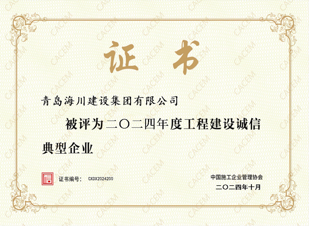 青島海川建設(shè)集團(tuán)榮獲工程建設(shè)誠(chéng)信典型企業(yè)等多項(xiàng)榮譽(yù)2024-10-31為全面推進(jìn)工程建設(shè)行業(yè)信用體系建設(shè),樹(shù)立誠(chéng)信建造品牌,營(yíng)造良好信用環(huán)境,中國(guó)施工企業(yè)管理協(xié)會(huì)繼續(xù)開(kāi)展本年度工程建設(shè)誠(chéng)信典型企業(yè)評(píng)估工作,經(jīng)企業(yè)申報(bào)、評(píng)選、公示、公布,青島海川建設(shè)集團(tuán)有限公司成功獲評(píng)工程建設(shè)誠(chéng)信典型企業(yè)榮譽(yù),連續(xù)5年榮獲此殊榮。在中國(guó)施工企業(yè)管理協(xié)會(huì)開(kāi)展...