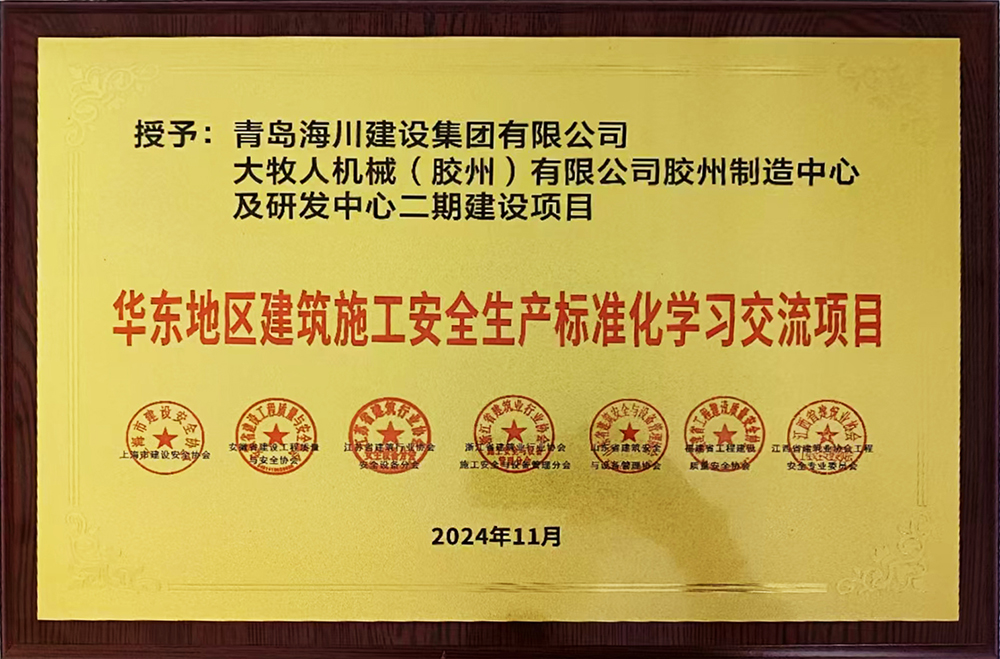 青島海川建設(shè)承建的大牧人項(xiàng)目獲評(píng)“華東地區(qū)建筑施工安全生產(chǎn)標(biāo)準(zhǔn)化學(xué)習(xí)交流項(xiàng)目”2024-11-2911月29日,華東地區(qū)建筑安全聯(lián)席會(huì)公布了2024年度華東六省一市建筑施工安全生產(chǎn)標(biāo)準(zhǔn)化工地學(xué)習(xí)交流活動(dòng)名單,青島海川建設(shè)集團(tuán)承建的大牧人機(jī)械(膠州)有限公司膠州制造中心及研發(fā)中心二期建設(shè)項(xiàng)目工程獲評(píng)“華東地區(qū)建筑施工安全生產(chǎn)標(biāo)準(zhǔn)化學(xué)習(xí)交流項(xiàng)目”。該獎(jiǎng)項(xiàng)由華東地區(qū)各省、...