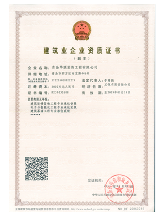 2017年4月,青島華聯(lián)裝飾工程有限公司傳來(lái)佳訊,其申報(bào)的電子與智能化工程專業(yè)承包貳級(jí)和建筑幕墻工程專業(yè)承包貳級(jí)增項(xiàng)資質(zhì)雙雙成功獲批。