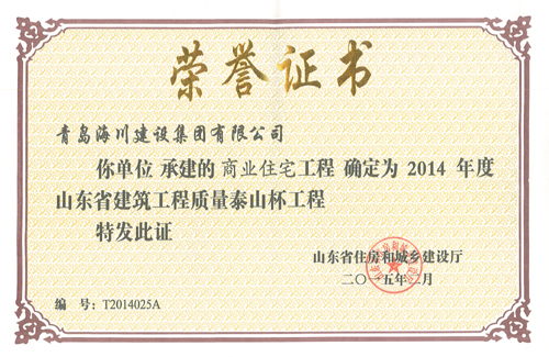 近日,公司從山東省住房和城鄉(xiāng)建設(shè)廳捧回五項泰山杯獎證書,其中2014年度山東省建筑工程質(zhì)量泰山杯工程證書三項;2014年度山東省建筑裝飾裝修工程質(zhì)量“泰山杯”工程證書兩項。