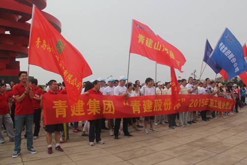 青建集團(tuán) “青建股份杯” 2015年職工健身跑(健步行)活動(dòng)6月27日(周六)上午9:00在五四廣場(chǎng)“五月的風(fēng)”雕塑下舉行開幕式,共有來自青建系統(tǒng)各單位的500余名員工踴躍參加了本次活動(dòng),青建集團(tuán)執(zhí)行總裁朱廣君致辭并為方隊(duì)鳴哨開跑。