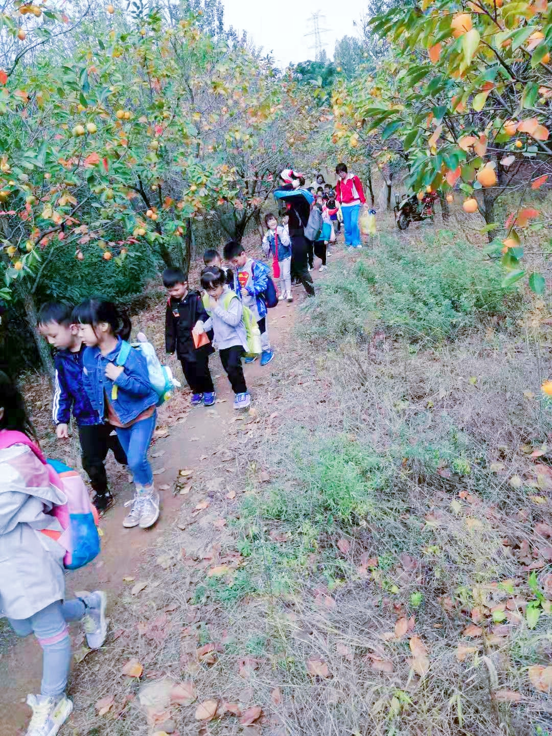 小朋友們滿懷欣喜與好奇走進(jìn)果園,成熟的柿子壓滿枝頭,一個個飽滿的果實調(diào)皮地躲在葉子下面,熟透的柿子像一個個大燈籠。