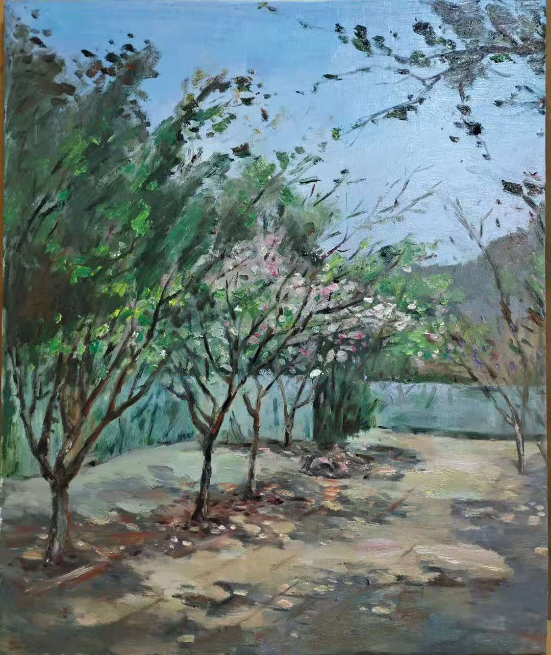 從今年春天開始,青島市女畫家協(xié)會(huì)眾多畫家分期分批多次來海川生態(tài)園寫生作畫,描繪不同季節(jié)的不同景色。最近已是深秋初冬,她們又被霜葉秋色吸引,前來描畫生態(tài)園獨(dú)特的景色。
